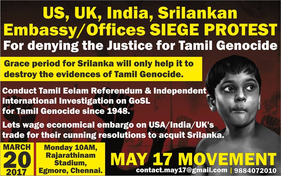 USA, India, UK, Srilankan Embassy/Offices SIEGE PROTEST for denying justice for Tamil Genocide