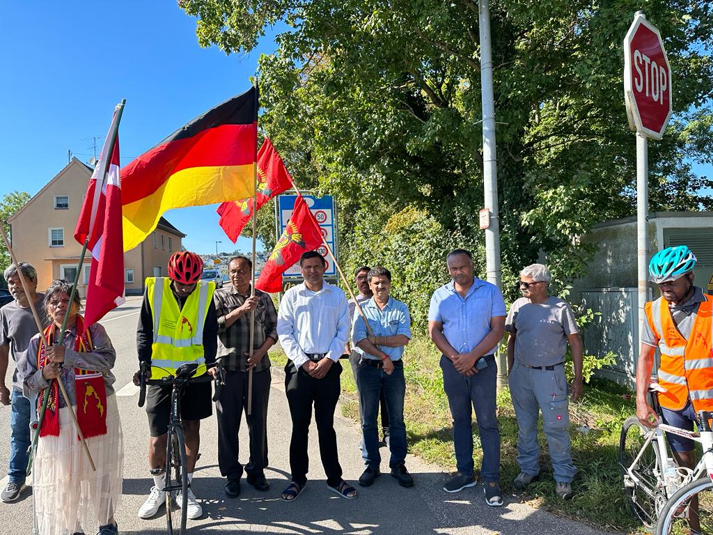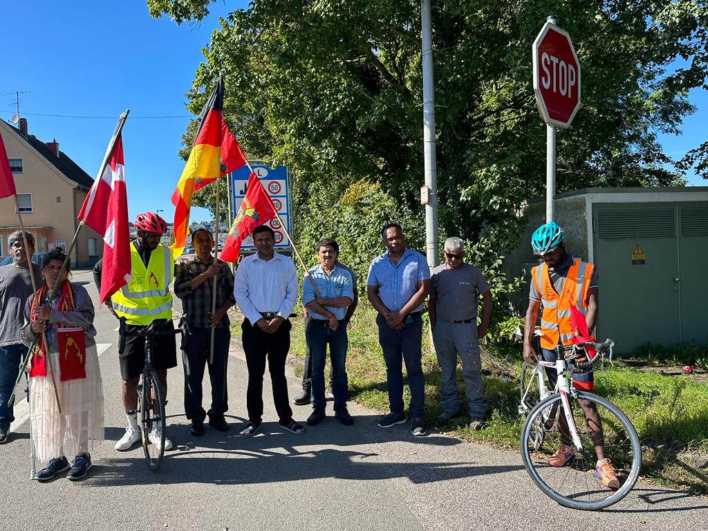 தமிழின அழிப்பிற்கு அனைத்துலக சுயாதீன விசாரணை வேண்டியும் நீதிகேட்டும் தமிழீழமே எமக்கான அரசியல் தீர்வு என்பதனை வலியுறுத்தியும் அறவழியில் ஈருருளிப்பயணத்தினை மேற்கொள்ளும் செயற்பாட்டாளர்களை அன்புடன் வரவேற்று,தமிழர்கள் என்ற உணர்வுடன் இறுகப்பற்றி,இணைந்து பயணிக்க அன்புரிமையுடன் அழைக்கிறோம். தொடரும் அறவழிப்போராட்டம் யேர்மனி, பிரான்சு, சுவிஸ் ஊடாகப் பயணித்து 18.09.2023 அன்று ஜெனிவாவில் அமைந்துள்ள ஐ.நா மனித உரிமைகள் பேரவை முன் நடைபெறவுள்ள மாபெரும் போராட்டத்துடன் இணையவுள்ளது .இப்போராட்டத்தில் இனமான உணர்வுடன் அனைத்து உறவுகளும் இணைந்து ஒரணியில் உரிமைக்குரல் எழுப்பிடுவோம் வாருங்கள்…