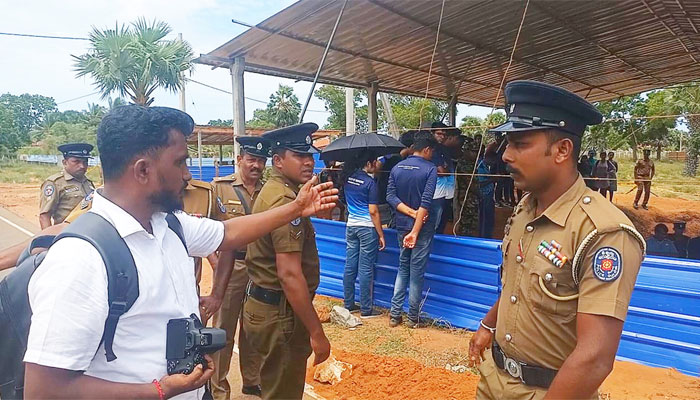 அப்போது அங்கு குறித்த மனிதப்புதைகுழியின் பாதுகாப்புக்கூரையின் வெளியே இருந்து ஊடகவியலாளர்கள் செய்திசேகரிப்பில் ஈடுபட்டிருந்தபோது, அங்கிருந்து ஊடகவியலாளர்கள் செய்திசேகரிப்பில் ஈடுபடமுடியாதென ஊடகவியலாளர்களின் கடமைக்கு பொலிசார் இடையூறு ஏற்படுத்தினர்.