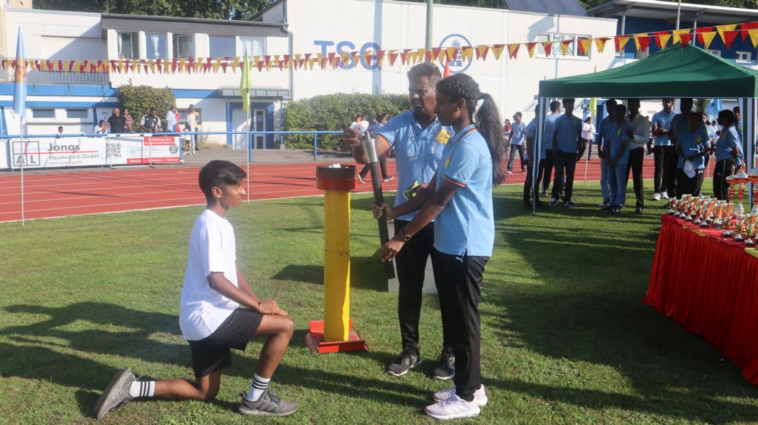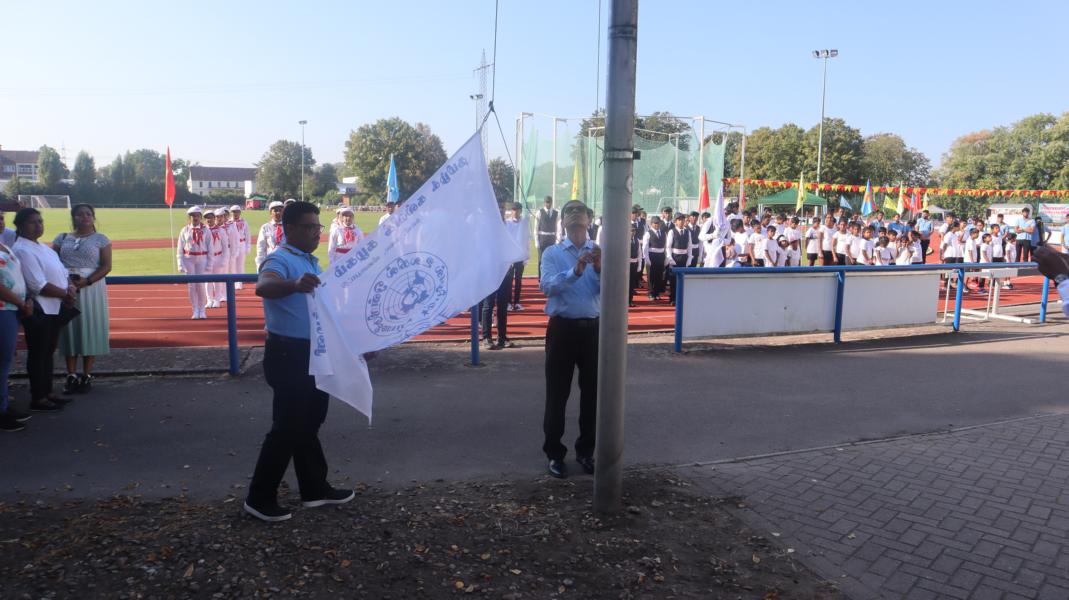 தமிழர் ஒருங்கிணைப்புக்குழுவின் வடமாநிலப் பொறுப்பாளர்களில் ஒருவராகிய திரு. துரையய்யா அவர்கள் பொதுச்சுடரினை ஏற்றிவைக்க, தமிழர் விளையாட்டுக் கூட்டமைப்பின் பொறுப்பாளர் திரு. இராஜகுமாரன் அவர்கள் யேர்மனிய நாட்டுத் தேசியக்கொடியினையும் தமிழர் ஒருங்கிணைப்புக்குழுவின் வடமாநிலப் பொறுப்பாளர்களில் ஒருவராகிய திரு. திருநிலவன் அவர்கள் தமிழீழத் தேசியக்கொடியினையும் தமிழ்க்கல்விக்கழகத்தின் கலைப்பிரிவுப் பொறுப்பாளர் திரு. பாஸ்கரமூர்த்தி அவர்கள் தமிழ்க்கல்விக்கழகக் கொடியினையும் ஏற்றிய பின்னர் அகவணக்கத்தோடு விளையாட்டுப் போட்டிகள் ஆரம்பமாகியது.