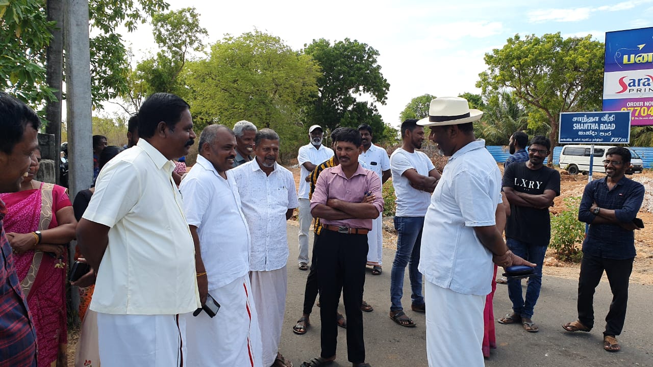 யாழ். தையிட்டியில் காணி அளவீட்டு பணிகள் செவ்வாய்க்கிழமை காலை முன்னெடுக்கப்பட இருந்த நிலையில் இதற்கு எதிர்ப்பு தெரிவித்து மக்கள் பிரதிநிதிகள், காணி உரிமையாளர்கள் மற்றும் பொதுமக்கள் என பலர் போராட்டத்தை முன்னெடுத்தனர்.