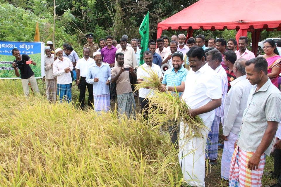 இவ் நெல் அறுவடைவிழாவில் பிரதம விருந்தினராக வடக்கு மாகாண விவசாய அமைச்சர் பொ.ஐங்கரநேசன் அவர்களும் சிறப்பு விருந்தினராக வடக்கு கிராம அபிவிருத்தி அமைச்சர் பா.டெனிஸ்வரன் அவர்களும், மாகாணசபை உறுப்பினர் றிப்கான் பதியுதீன் அவர்களும் வடமாகாண விவசாய பணிப்பாளர் சிவகுமார் ஆகியோர் கலந்து சிறப்பித்தனர்.