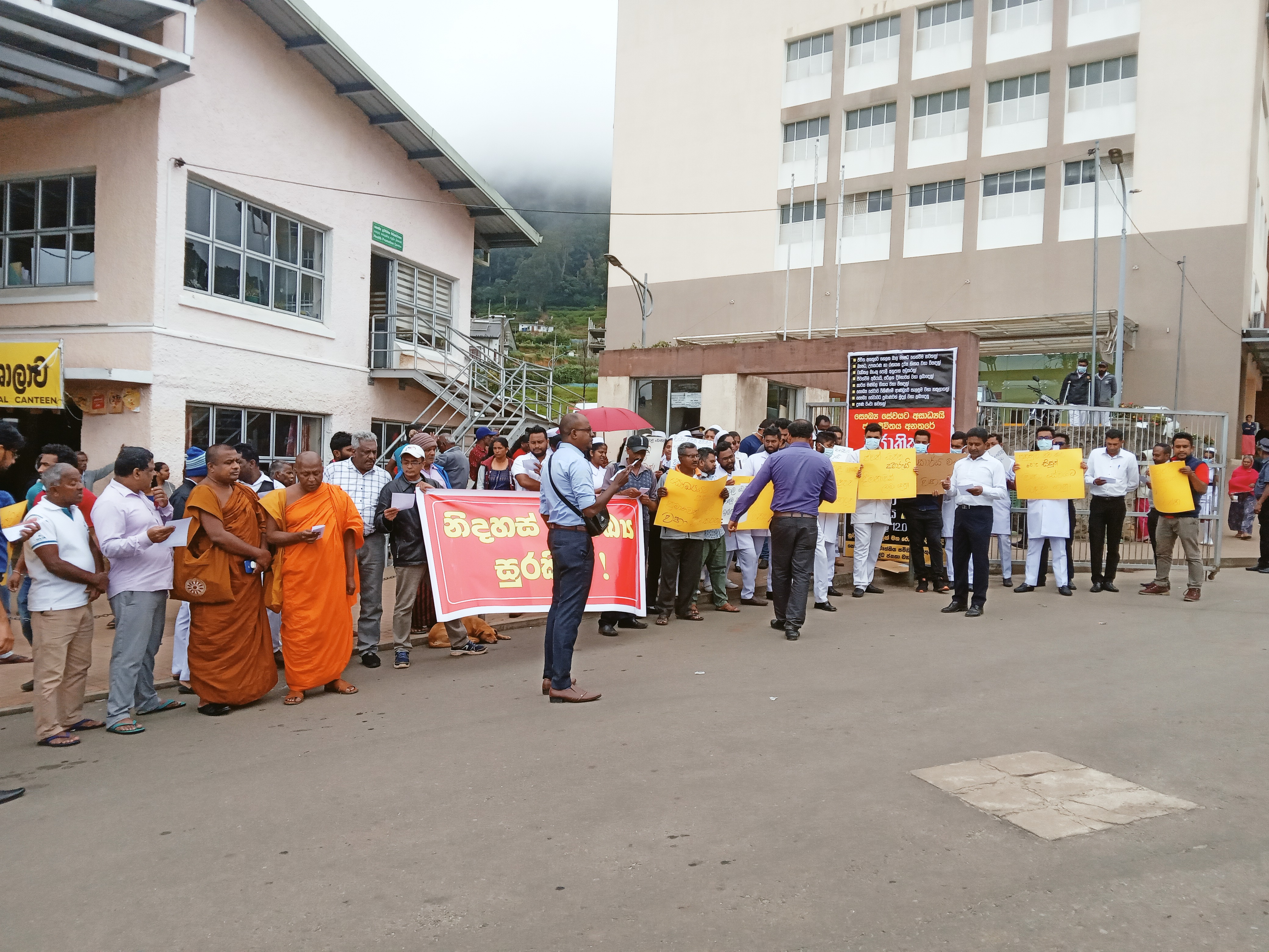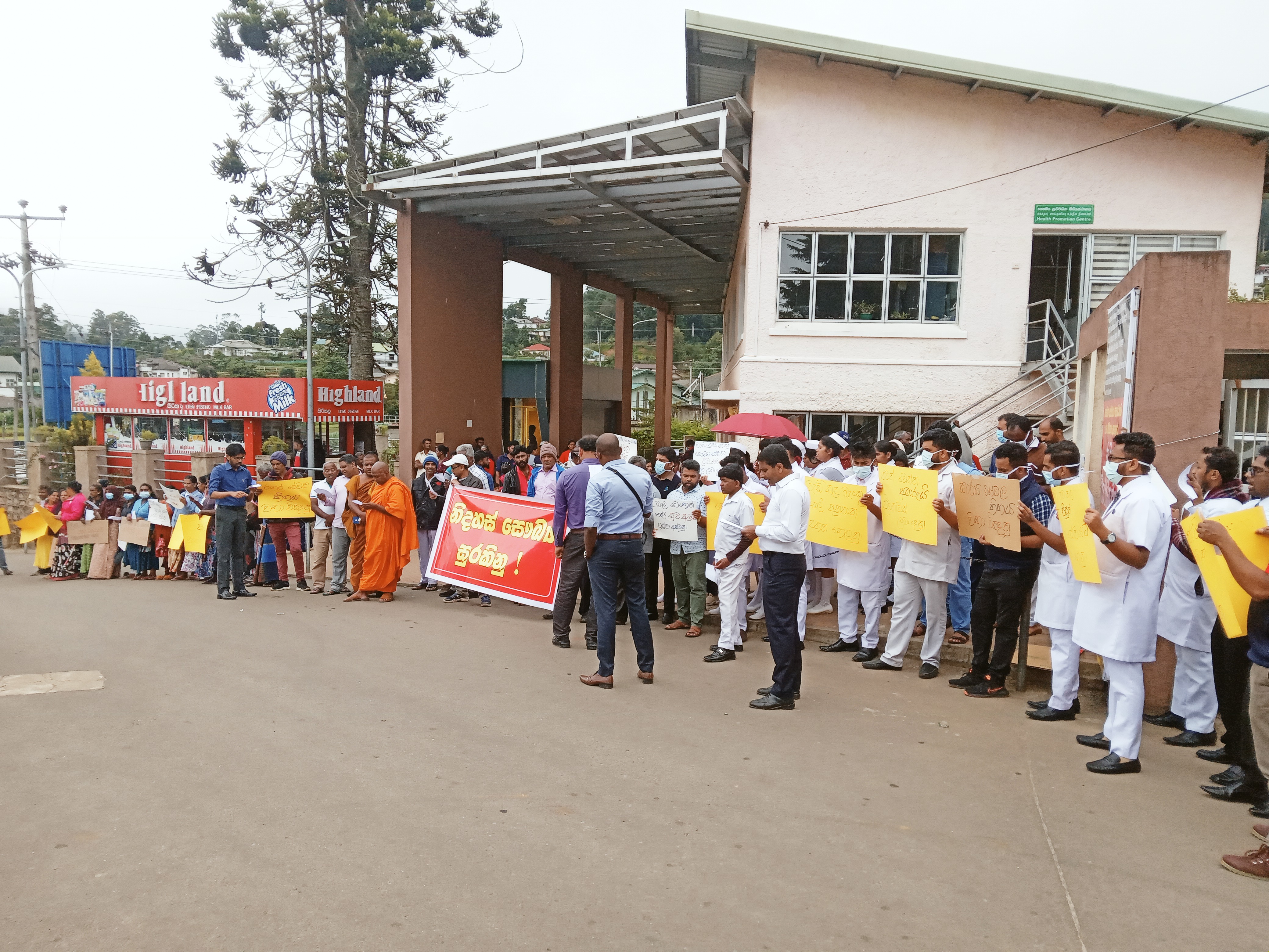 குறித்த ஆர்ப்பாட்டம் நுவரெலியா பொது வைத்தியசாலை நுழைவாசலில் நடைபெற்றது.