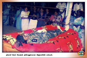 தமது இறுதி அஞ்சலியை செலுத்தக் கூடியிருந்த மக்களில் பலர் துன்பம் தாழாது மயங்கி விழுந்தனர் சோக ஒலி தமிழீழம் எங்கும் எதிரொலித்தது.