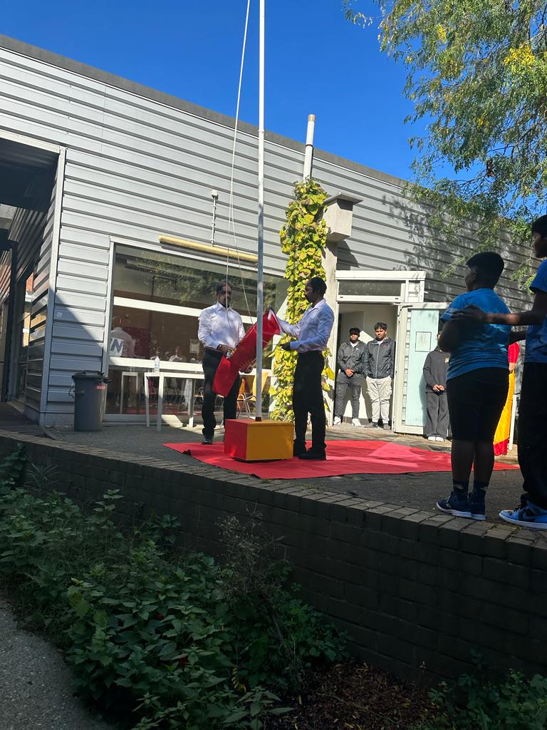 முதல் நிகழ்வாக தேசியக்கொடி ஏற்றிவைக்கப்பட்டது. தொடர்ந்து