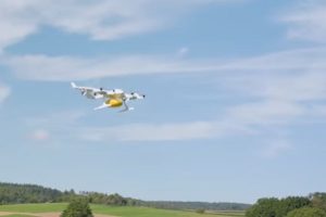 அங்கு, ட்ரோனில், பொருட்களை வைப்பதற்கான இடத்தில், அந்த பொருட்கள் அடங்கிய பெட்டி வைக்கப்படுகிறது. அந்த பெட்டியுடன் பறக்கும் ட்ரோன், வாடிக்கையாளர் வாழும் பகுதியிலுள்ள ட்ரோன் இறங்கும் ஓரிடத்தைச் சென்றடைகிறது.
