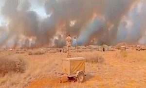 அப்போது அந்த பயிற்சி தளத்துக்கு அடுத்துள்ள சுரங்கத்தில் திடீரென தீப்பிடித்தது. இந்த தீ மளமளவென ராணுவ பயிற்சி தளத்துக்கும் பரவியது. இதில் ராணுவ முகாம் மற்றும் அங்கிருந்த வாகனங்கள் போன்றவை கொழுந்துவிட்டு எரிந்தன.