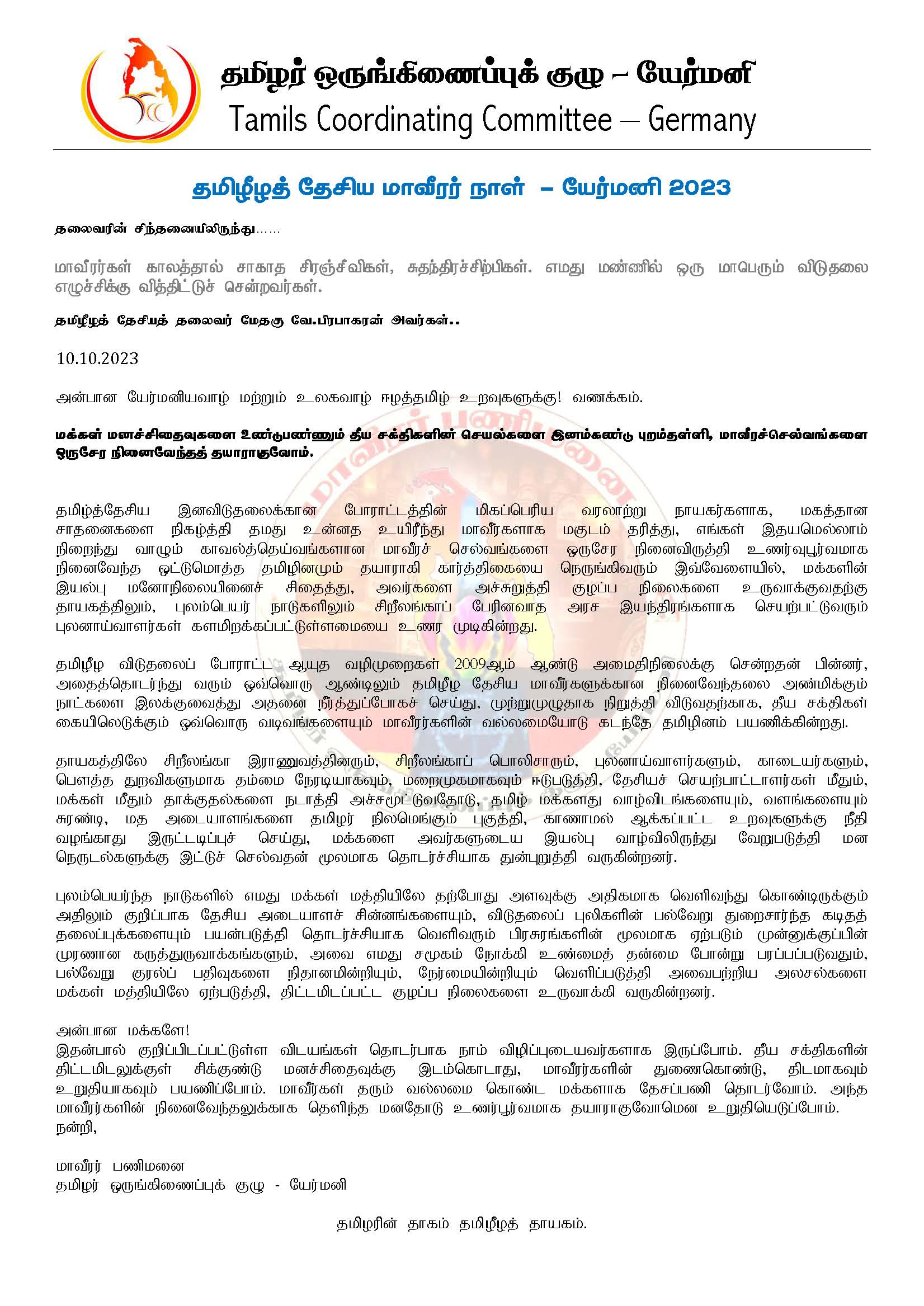 அன்பான யேர்மனியவாழ் மற்றும் உலகவாழ் ஈழத்தமிழ் உறவுகளுக்கு! வணக்கம்.