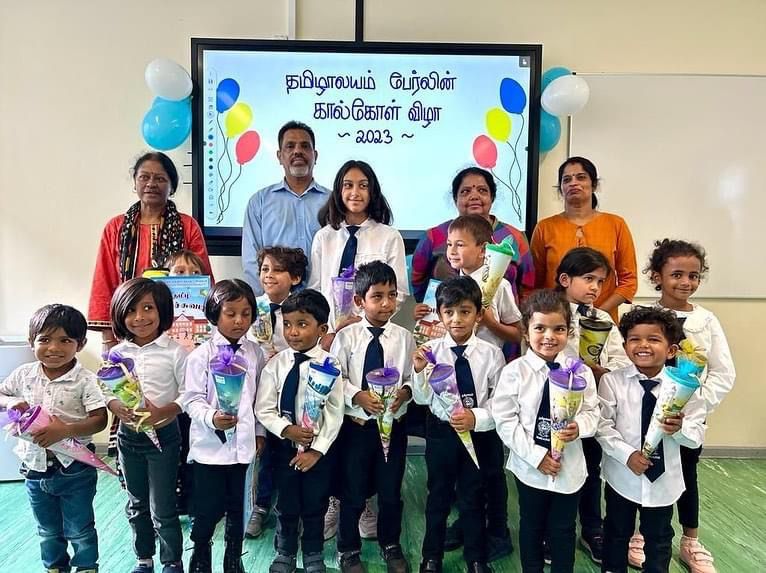 நமது அழகிய தாய்மொழியான தமிழைக் கற்க இந்த ஆண்டு மீண்டும் பல குழந்தைகள் நமது தமிழாலயத்தில் சேர்க்கப்பட்டுள்ளதால் பேர்லின் தமிழ்ச் சமூகம் பெருமிதமும் மகிழ்ச்சியும் அடைந்துள்ளது. எங்கள் நிர்வாகியின் தலைமையில் மற்றும் எங்கள் மதிப்புமிக்க முதல் தலைமுறை ஆசிரியர்களின் ஆதரவுடன், குழந்தைகள் மற்றும் அவர்களின் பெற்றோர்கள் அன்புடன் வரவேற்கப்பட்டனர். குழந்தைகளின் சிரிக்கும் முகங்கள் எதிர்காலத்தில் கற்றல் குறித்த அவர்களின் உற்சாகத்தைப் பிரதிபலித்தன. அவர்களின் ஊக்கத்தை அதிகரிக்க, இன்று முறையான கால்கோல் விழாவை ஏற்பாடு செய்தோம்.