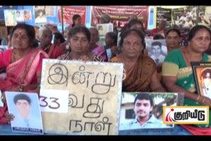 காணாமல் ஆக்கப்பட்டவர்களின் உறவினர்களின் போராட்டம் கிளிநொச்சியில் 33ஆவது நாளாக இன்றும் தொடர்கிறது.