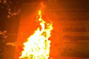 இதில், தனக்குத்தானே தீ வைத்துக் கொண்ட நபர் ஆபத்தான நிலையில் சிகிச்சை பெற்று வருவதுடன், பொலிஸ் உத்தியோகத்தர் தீக் காயங்களுடன் கால் ஒன்று உடைந்த நிலையில் சிகிச்சை பெற்று வருகின்றார்.