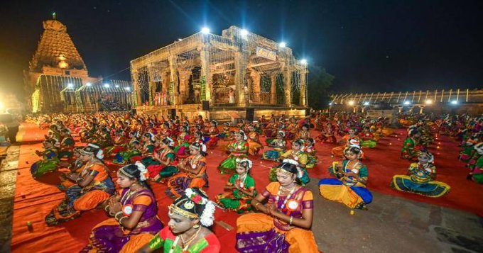 தொடர்ந்து திருமுறை பாடல்கள், கருத்தரங்கம், 1038 பரதநாட்டிய கலைஞர்கள் பங்கேற்ற நடன நிகழ்ச்சி உள்ளிட்டவை நடைபெற்றன. தொடர்ந்து சதய விழாவான நேற்று (25ம் தேதி) ராஜராஜ சோழன் மீட்டெடுத்த பன்னிரு திருமுறைகளுக்கு சிறப்பு தீபாரதனை காண்பிக்கப்பட்டு, ஓதுவார்கள் பன்னிரு திருமுறைப் பாடல்களை பாடி ஊர்வலமாக, யானை மீது எடுத்துச் சென்றனர்.
