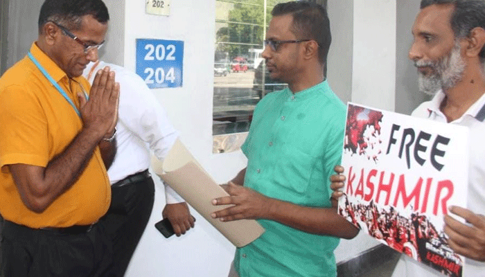 ஒக்டோபர் 27 காஷ்மீர் கறுப்பு தினத்தின் முண்னிட்டு காஷ்மீர் மக்களின் சுதந்திரப் போராட்டத்திற்கு ஒருமைப்பாட்டை வெளிப்படுத்தும் வகையில் முஸ்லிம் உரிமைகளுக்கான கூட்டமைப்பு ஏற்பாடு செய்திருந்த கவன ஈர்ப்புப் போராட்டம் வெள்ளிக்கிழமை (27) கொழும்பில் உள்ள ஐக்கிய நாடுகள் சபையின் தலைமையகத்திற்கு முன்னால் இடம்பெறுவதையும் மஹஜர் கையளிக்கப்படுவதையும் படங்களில் காணலாம்.