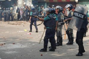 காவல் துறையினர் கண்ணீர் புகைக் குண்டுகளை வீசியும், தண்ணீரை பீய்ச்சி அடித்தும் கூட்டத்தைக் கலைத்தனர். இந்த மோதலில், ஒரு போலீசாரின் தலை வெட்டப்பட்டது. மேலும், இந்த மோதலில் நூற்றுக்கும் மேற்பட்டோர் காயமடைந்துள்ளனர். கடந்த 4 நாட்களாக நடைபெற்று வரும் போராட்டத்தில் பங்களாதேஷ் தேசியவாத கட்சியைச் சேர்ந்த 1,680க்கும் மேற்பட்டோர் கைது செய்யப்பட்டிருப்பதாக காவல்துறை தெரிவித்துள்ளது. பங்களாதேஷ் தேசியவாத கட்சி டாக்காவில் போராட்டத்தில் ஈடுபட்ட அதேநேரத்தில், ஜமாத் இ இஸ்லாமி அமைப்பு தனியாக ஆளும் கட்சிக்கு எதிராக போராட்டத்தில் ஈடுபட்டது. இதனால், டாக்காவில் பதற்றமான சூழல் நிலவி வருவதாக செய்திகள் தெரிவிக்கின்றன.