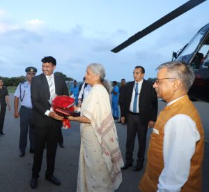 திருகோணமலை விமான தளத்தில் நிர்மலா சீதாராமனை கிழக்கு மாகாண ஆளுநர் செந்தில் தொண்டமான், பிரதம செயலாளர் ரத்நாயக்க, ஆளுநர் செயலாளர் மதநாயக்க, ஆளுநரின் பிரத்தியேக செயலாளர் அணில் விஜயஶ்ரீ, அரச அதிபர் மற்றும் சுற்றுலா பணியக தவிசாளர் மதன் ஆகியோர் வரவேற்றனர்.