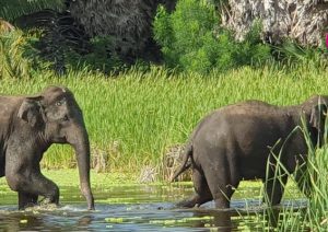 தற்போது வனஜீவராசிகள் பாதுகாப்பு திணக்கள உத்தியோகஸ்த்தர்கள் இஸ்தத்திற்கு விரைந்து கடற்கரையில் அமைந்துள்ள சவுக்குமர பற்றைக் காட்டினுள் தரித்து நிற்கும் யானைகளுக்கு சத்தமிட்டு கோபம் ஏற்படுத்தாது அங்கு கூடியிருந்த பொதுமக்களை அப்புறப்படுத்தியுள்ளனர்.
