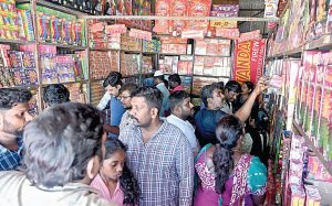 இந்நிலையில், நேற்று விடுமுறை நாள் என்பதால் புத்தாடைகள், பட்டாசுகளை வாங்குவதற்கு குடும்பம் குடும்பமாக கடைகளில் பொதுமக்கள் குவிந்தனர். பட்டாசுகளை வாங்குவதற்கு ஏராளமானோர் தீவுத்திடலில் குவிந்தனர். அங்கு, குழந்தைகள் முதல் பெரியவர்கள் வரை ஆர்வமுடன் பட்டாசுகளை வாங்கிச் சென்றனர்.