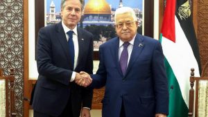 அமெரிக்காவின் வெளியுறவுத்துறை அமைச்சர் பிளிங்கன் இஸ்ரேல் ஆக்கிரமிப்பு மேற்கு கரைப்பகுதிக்கு ஞாயிற்றுக்கிழமை திடீர் விஜயம் செய்தார். பின்னர் அவர் பாலஸ்தீன அதிபர் மஹுமுத் அப்பாஸை சந்தித்தார்.
