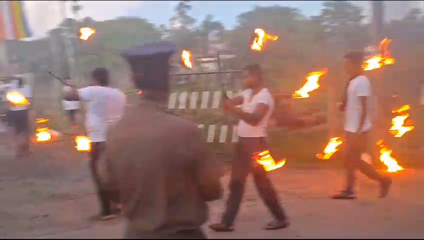 அந்தவகையில், நேற்றைய பூஜை வழிபாடுகளானது காலை ஆரம்பமாகியுள்ளது. இதன்போது சிங்கள மக்கள் தீப்பந்தங்களை ஏந்தியவாறு ஊர்வலமாக, விகாரையை நோக்கி வரும்போது அங்கிருந்த போராட்டக்காரர்கள் போராட்டத்தில் ஈடுபட்டனர்.