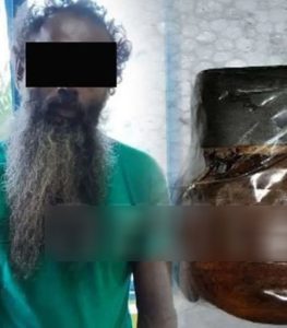 உள்ளூரில் தயாரிக்கப்பட்ட துப்பாக்கி மற்றும் தோட்டாக்களையும் வெளிநாட்டில் தயாரிக்கப்பட்ட கைக்குண்டு, கைத்துப்பாக்கியையும் வைத்திருந்த நிலையிலேயே இவர் கைது செய்யப்பட்டார்.