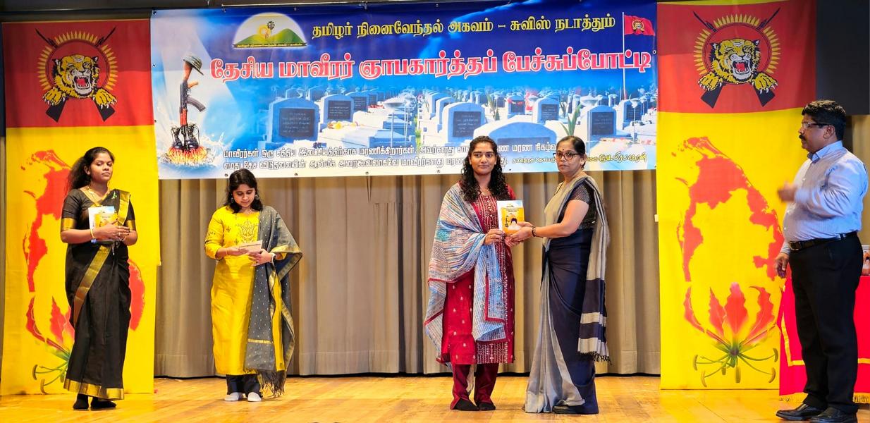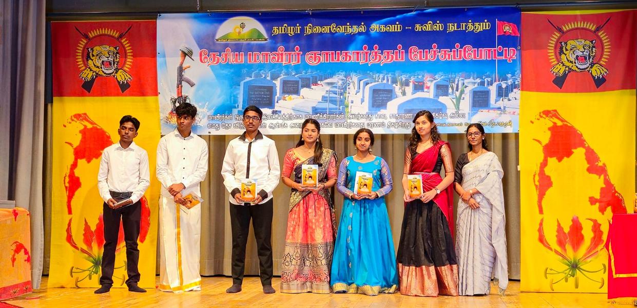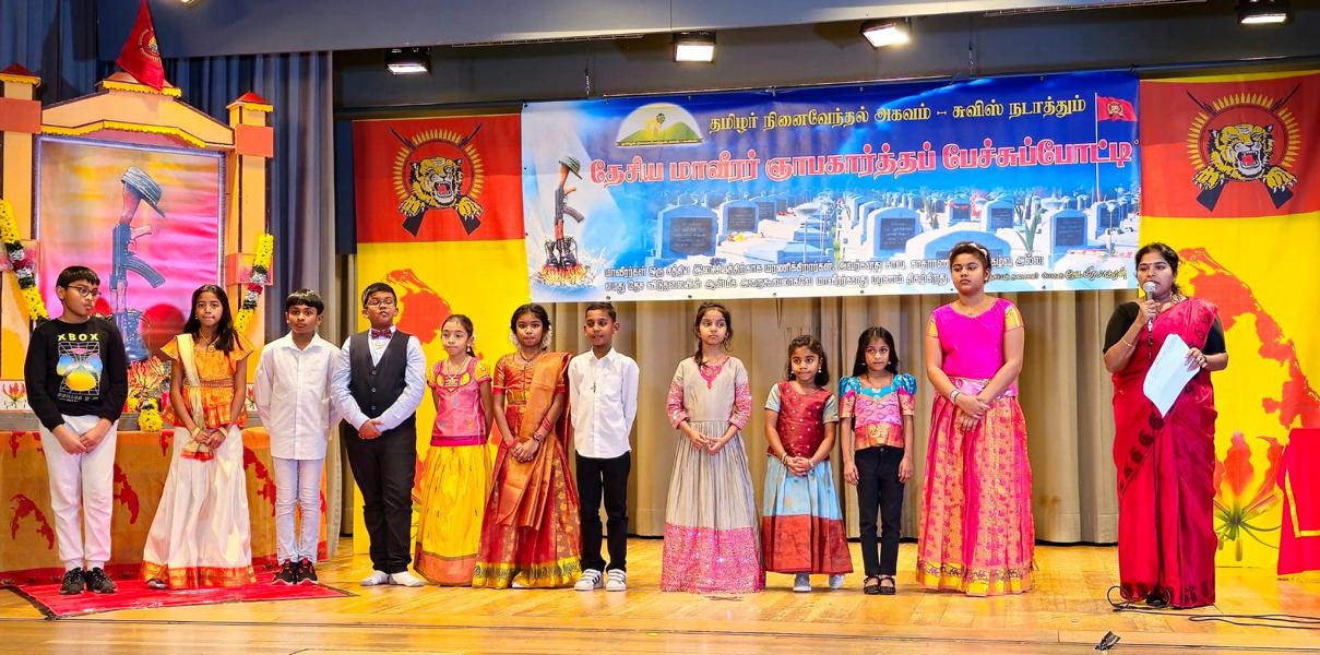 தமிழீழ விடுதலை என்ற உயரிய இலட்சியத்திற்காகத் தங்கள் இன்னுயிர்களை ஆகுதியாக்கிய மாவீரர்களை தமிழினம் தலைதாழ்த்தி வணங்கிஇ நிமிர்ந்து உரம் பெறுகின்ற நவம்பர் மாதத்தில் தமிழீழத் தேசிய மாவீரர் நினைவாகத் தமிழர் நினைவேந்தல் அகவம் சுவிஸ் ஆண்டுதோறும் நடாத்துகின்ற பேச்சுப்போட்டி உணர்வெழுச்சியுடன் நடைபெற்றது. 18.11.2023 சனிக்கிழமை சூரிச்இ பேரண் ஆகிய நகரங்களில் 5 – 11 வயதுப்பிரிவுகளுக்கான வலயமட்டப் போட்டிகளும் 19.11.2023 ஞாயிறு நாடுதழுவிய வகையில் 13 – 30 வயதும் அதற்கு மேற்பட்டவர்களுக்குமான போட்டிகளும் நடைபெற்றன.
