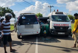 நோயாளர் காவு வண்டிக்குப் பின்னால் வந்த முச்சக்கரவண்டி, நோயாளர் காவு வண்டியை முந்திச் செல்ல முற்பட்ட வேளை எதிரே வந்த வாகனத்துடன் மோதி, நோயாளர் காவு வண்டிக்கும் எதிரே வந்த வாகனத்துக்கும் இடையில் சிக்கி விபத்துக்குள்ளானது.