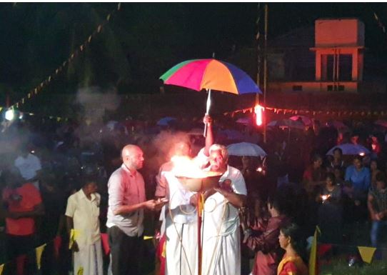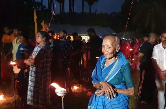 பிரதான ஈகைச் சுடரினை கடற்கரும்புலி மாவீரர் தமிழினியின் தந்தையார் முத்துலிங்கம் சிவப்பிரகாசம் ஏற்றிவைத்தாா்.