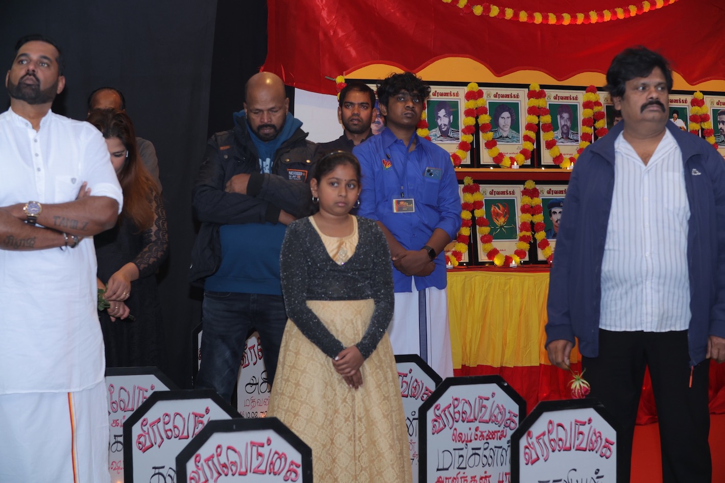 சரியாகத் தாயக நேரம் மாலை 6.05 மணிக்கு மணியொலி எழுப்பப்பட்டு அகவணக்கம் செலுத்தி முதன்மைச்சுடர் ஏற்றியவுடன், தமிழீழக் கனவுடன் தமிழ் மக்களின் விடுதலைக்காய் தங்கள் இன் உயிர்களை ஆகுதியாக்கிய எம் தேசப் புதல்வர்களின் கல்லறைக்கு மாவீரர் குடும்ப உறவுகள் சுடரேற்றியவுடன் மாவீரர் துயிலுமில்லப்பாடல் ஒலிபரப்பப்பட்டது.