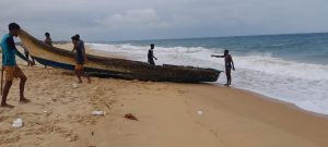 யாழ்ப்பாணம் வடமராட்சி கிழக்கு குடத்தனை வடக்கு பொற்பதி பகுதியில் படகு ஒன்று கரை ஒதுங்கியுள்ளது.