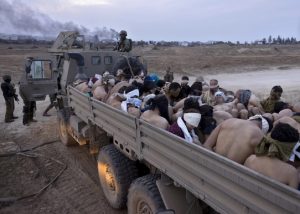 இஸ்ரேலிய படையினர் காசாவை சுற்றியுள்ள பகுதிகளில் நூற்றுக்கணக்கான பாலஸ்தீனியர்களை சுற்றிவளைத்து அவர்களை குடும்பத்தவர்களிடமிருந்து தனிமைப்படுத்தி அரைநிர்வாணப்படுத்தி கடற்கரையோரத்தில் உள்ள தடுப்பு முகாமிற்கு எடுத்து சென்றனர் அங்கு அவர்களை கடும் குளிரில் கடும் தாகத்துடன் தடுத்துவைத்திருந்தனர் என மனித உரிமை அமைப்புகளும் உறவினர்களும் விடுதலையானவர்களும் தெரிவித்துள்ளனர்.