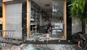 இந்த விபத்தில் அப் பகுதியில் இருந்த இரண்டு வர்த்தக நிலையங்களும் சேதமடைந்துள்ளன.