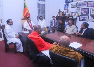 கடந்த வாரம் ராஜபக்ச தனது அலுவலகத்;தில் தனது பணியாளர்களுடன் பெரிய தேசிய கொடியின் கீழ் அமர்ந்திருந்தார்.
