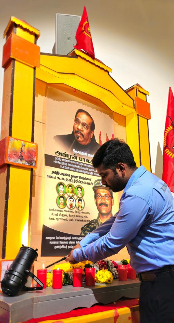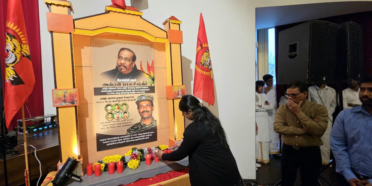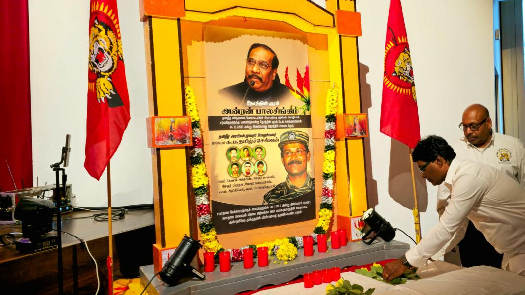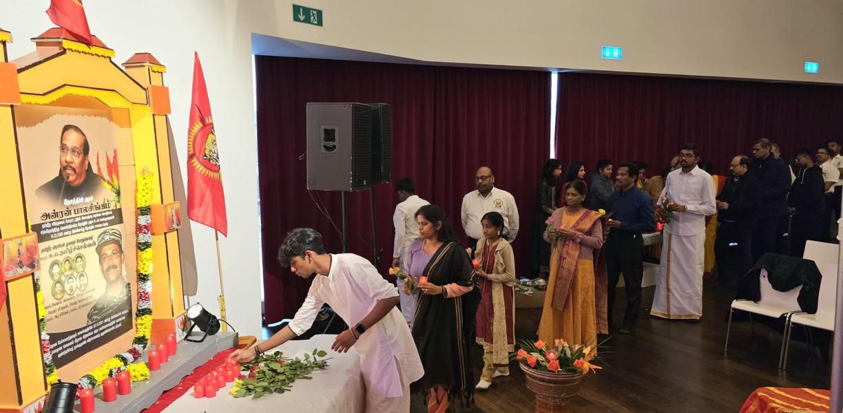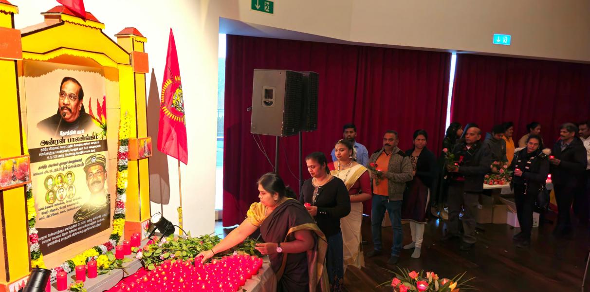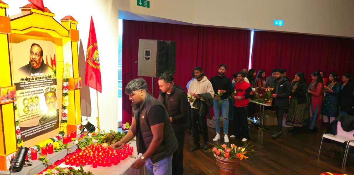 தேசத்தின் குரல் அன்ரன் பாலசிங்கம், தமிழீழ அரசியற்துறைப் பொறுப்பாளர் பிரிகேடியர் சு.ப.தமிழ்ச்செல்வன் உட்பட 7 மாவீரர்களினதும் நினைவுகள் சுமந்த வணக்க நிகழ்வானது 17.12.2023 ஞாயிறு அன்று பிறிபேர்க் மாநிலத்தில் அரங்கம் நிறைந்த மக்களுடன் உணர்வுபூர்வமாக நடைபெற்றது. சுவிஸ் தமிழர் ஒருங்கிணைப்புக் குழுவின் ஏற்பாட்டில் நடைபெற்ற இவ்வணக்க நிகழ்வில் பொதுச்சுடரேற்றல், தமிழீழத் தேசியக்கொடி ஏற்றல், ஈகச்சுடர்கள் ஏற்றல், அகவணக்கம் என்பவற்றைத் தொடர்ந்து சுடர் வணக்கமும் மலர்; வணக்கமும் செலுத்தப்பட்டது.
