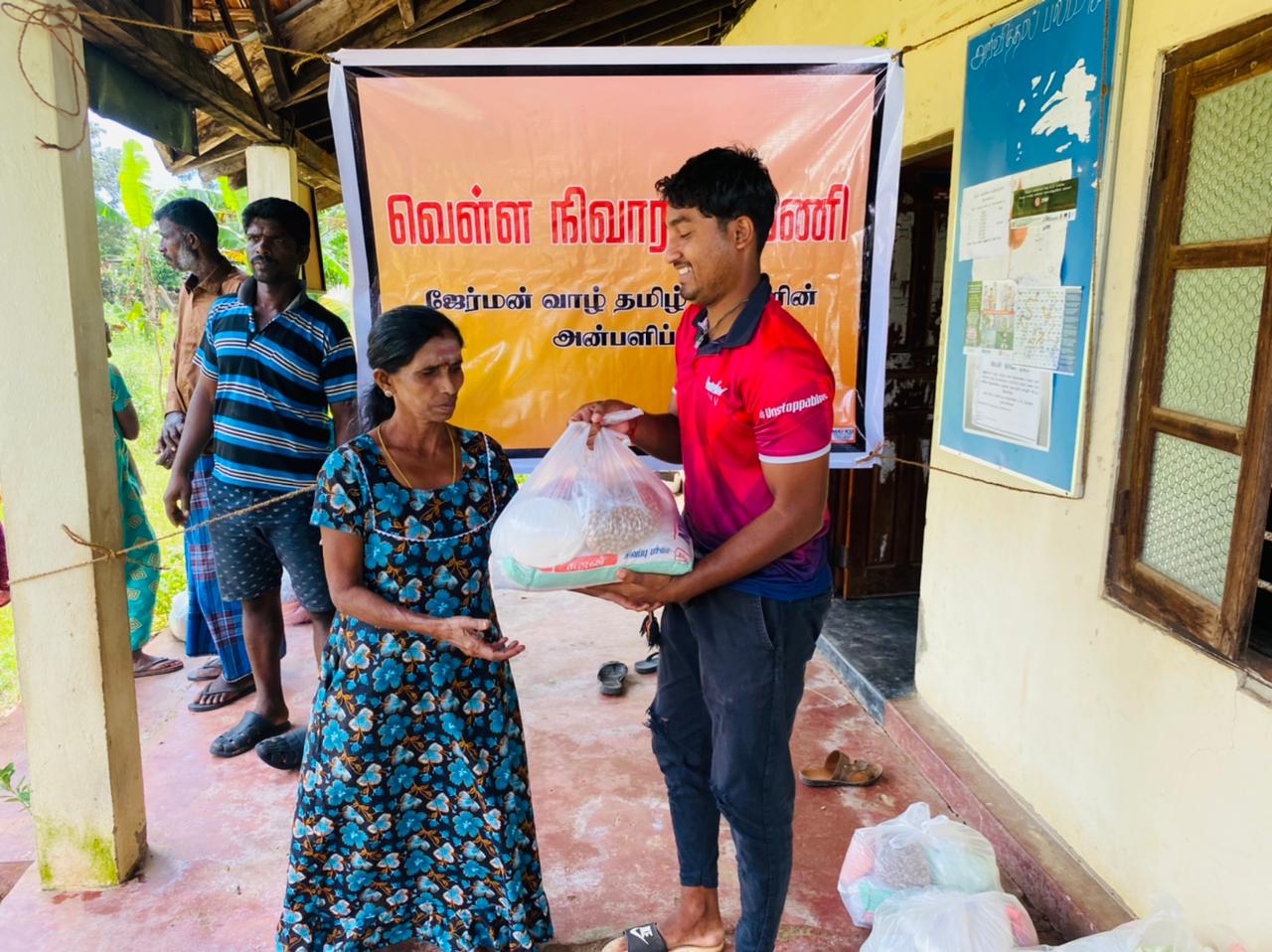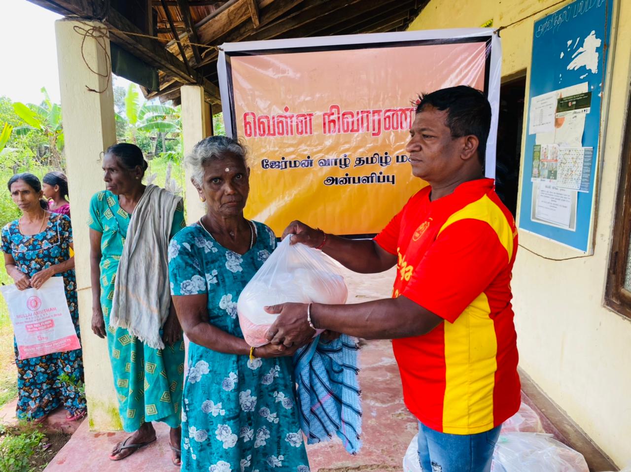 முல்லைத்தீவு மாவட்டத்தில் தொடர்ந்து பெய்துவரும் மழைகாரணமாக வெள்ளத்தில் பாதிக்கப்பட்ட இந்துபுரம் முறுகண்டியில் வாழ்கின்ற முப்பது குடும்பங்களுக்கு ஜேர்மன் தமிழ் மக்களின் அன்பளிப்பாக உலர் உணவுப்பொதிகள் வழங்கிவைக்கப்பட்டன.