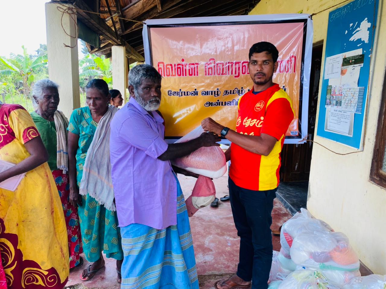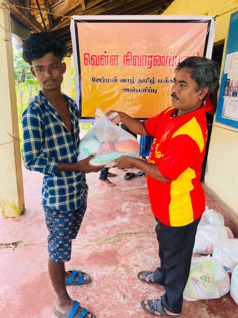 முல்லைத்தீவு மாவட்டம் துணுக்காய் பிரதேச செயலர் பிரிவின் கீழ் உள்ள மல்லாவிவடக்குகிராமசேவகர் பிரிவில் வெள்ளத்தால் பாதிக்கப்பட்ட 15 குடும்பங்களிற்கு 26/11/2023 ஜேர்மன் வாழ் தமிழ்மக்களின் நிதிப்பங்களிப்பில் உலர்உணவுப்பொருட்கள் வழங்கப்பட்டது.