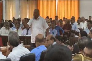 இதன்போது ஒரு கட்டத்தில் கூட்டத்தில் பாராளுமன்ற உறுப்பினர்களை விமர்சித்து உரையாற்றிக் கொண்டிருந்த நபர் தீடீரென கூட்டத்திற்கு நடுவே வந்ததால் பரபரப்பு ஏற்பட்டது.