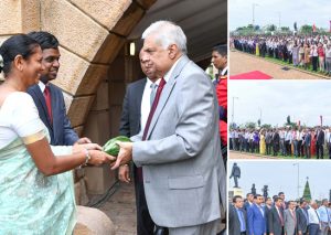 ஜனாதிபதி ரணில் விக்ரமசிங்க புதிய வருட கடமைகளை ஆரம்பிக்கும் முகமாக, தேசிய கொடியை ஏற்றிவைத்த பின்னர், நாட்டிற்காக உயிர்த் தியாகம் செய்த வீரர்களுக்கு 01 நிமிட மௌன அஞ்சலி செலுத்தப்பட்டது.