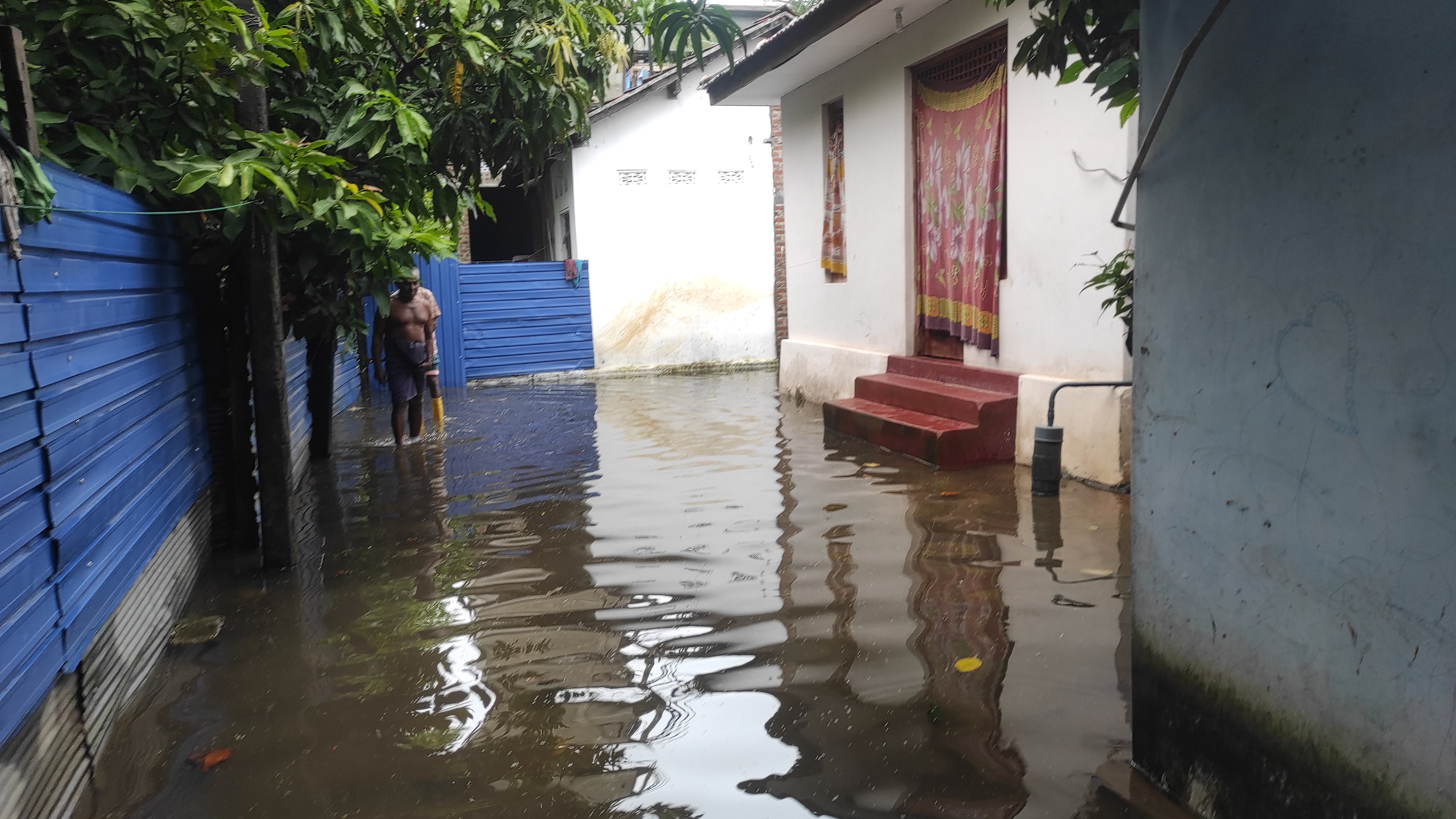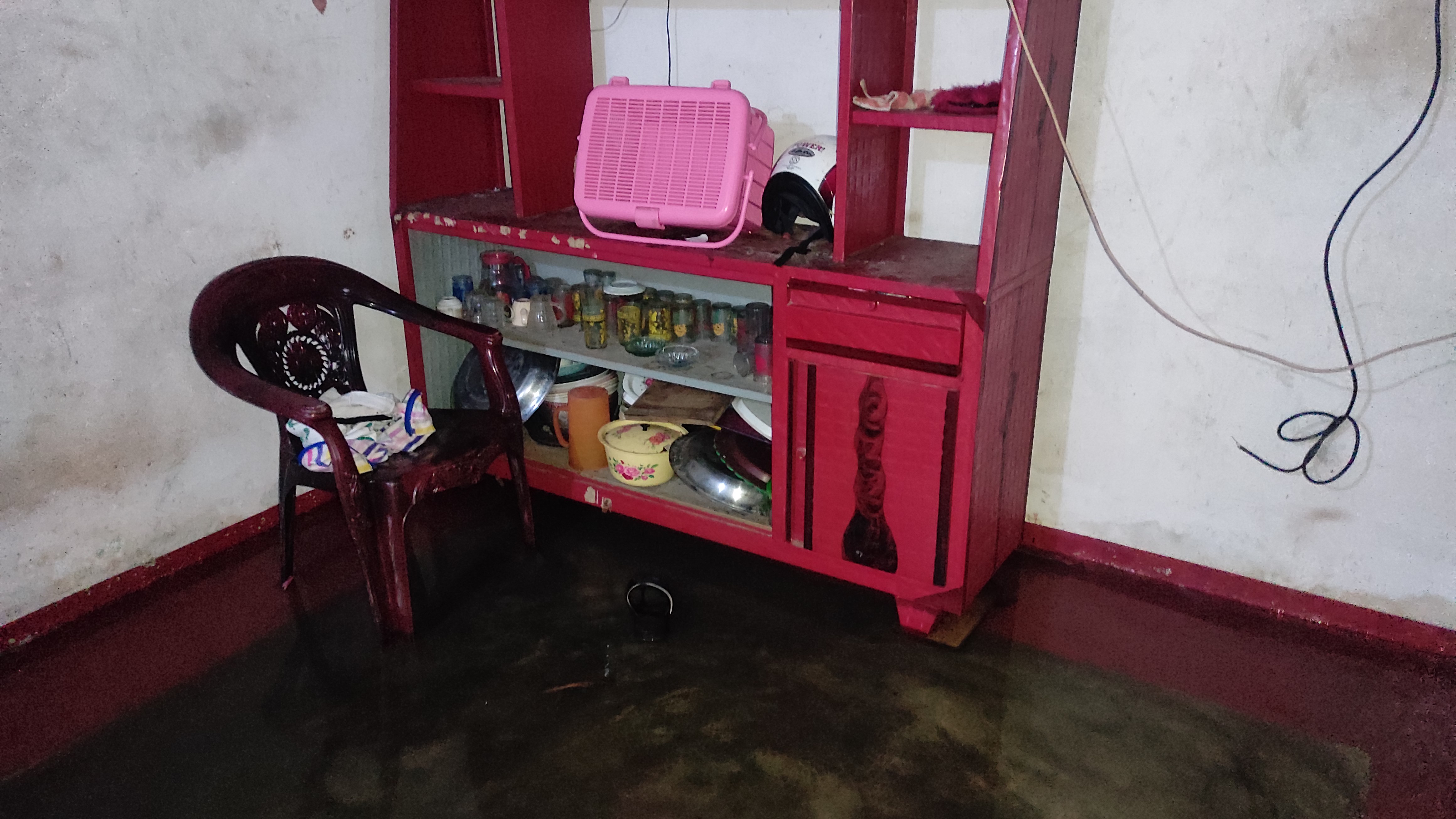 நேற்று திங்கட்கிழமை (01) பிற்பகல் 3 மணி முதல் இன்று 8.30 மணி வரையான காலப்பகுதியில் இம்மாவட்டத்தில் இடைவிடாத கடும் மழை பெய்தது.இதனால் பெரும் பாலான வீடுகளுள் வெள்ளம் புகுந்துள்ளது.