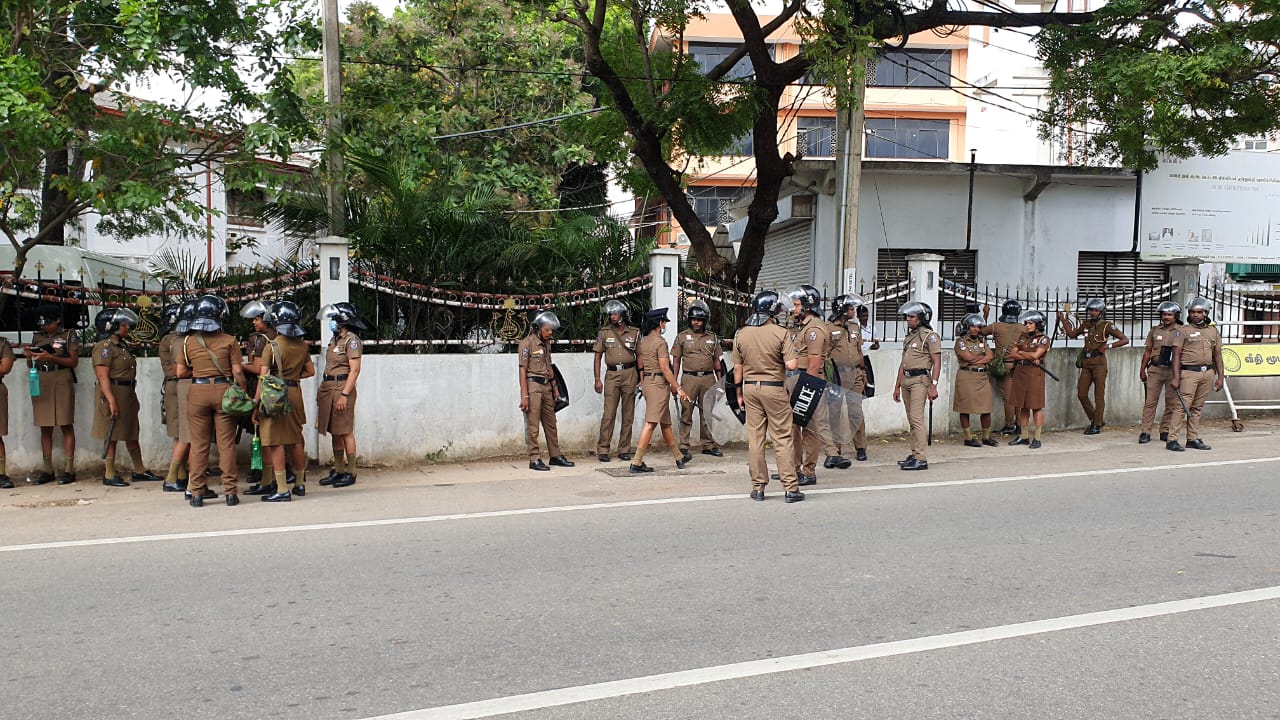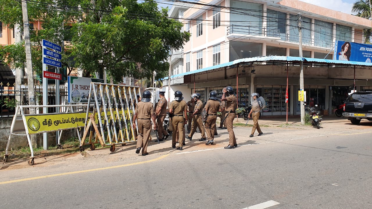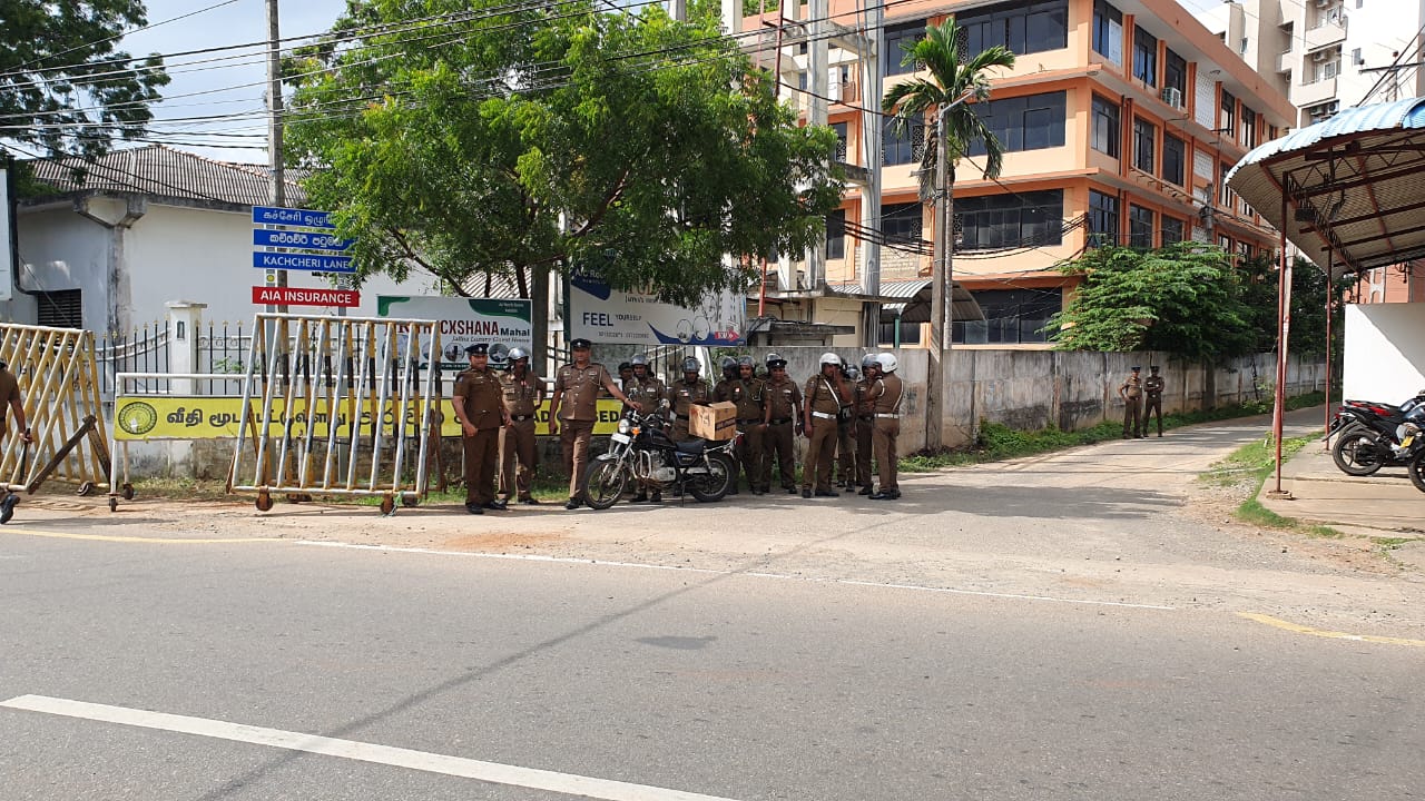 யாழ்ப்பாண மாவட்ட செயலக வளாகம் சுற்றியுள்ள பகுதிகள் வீதிகளில் வீதித்தடைகள் கொண்டுவரப்பட்டு முழுமையாக பொலிஸார், விசேட அதிரடிப் படையினர் கலகமடக்கும் படையினர் மற்றும் இராணுவத்தினர் குவிக்கப்பட்டுள்ளனர்.