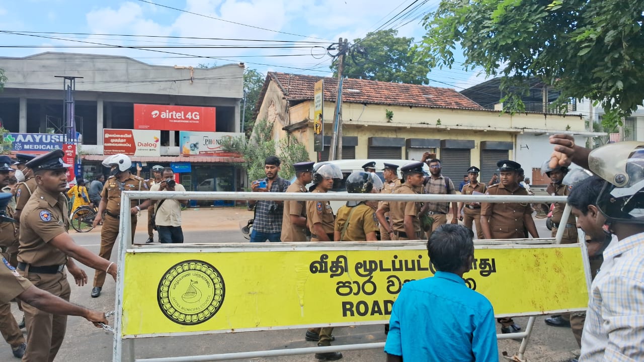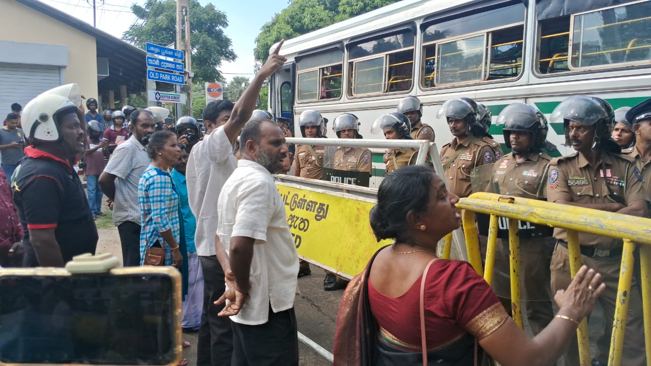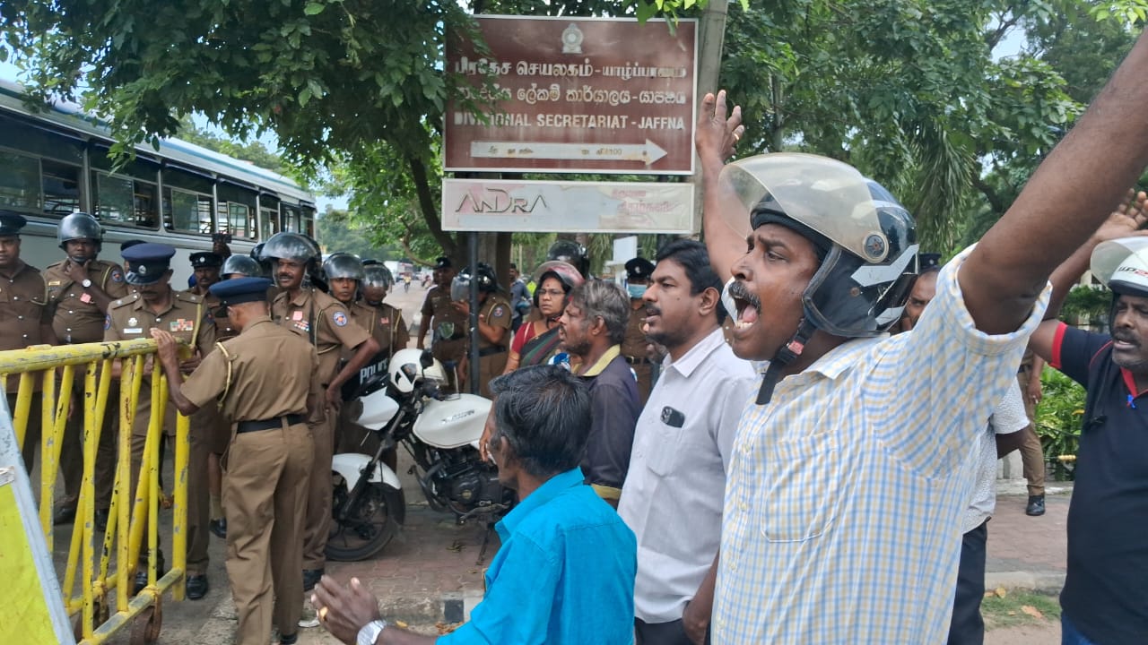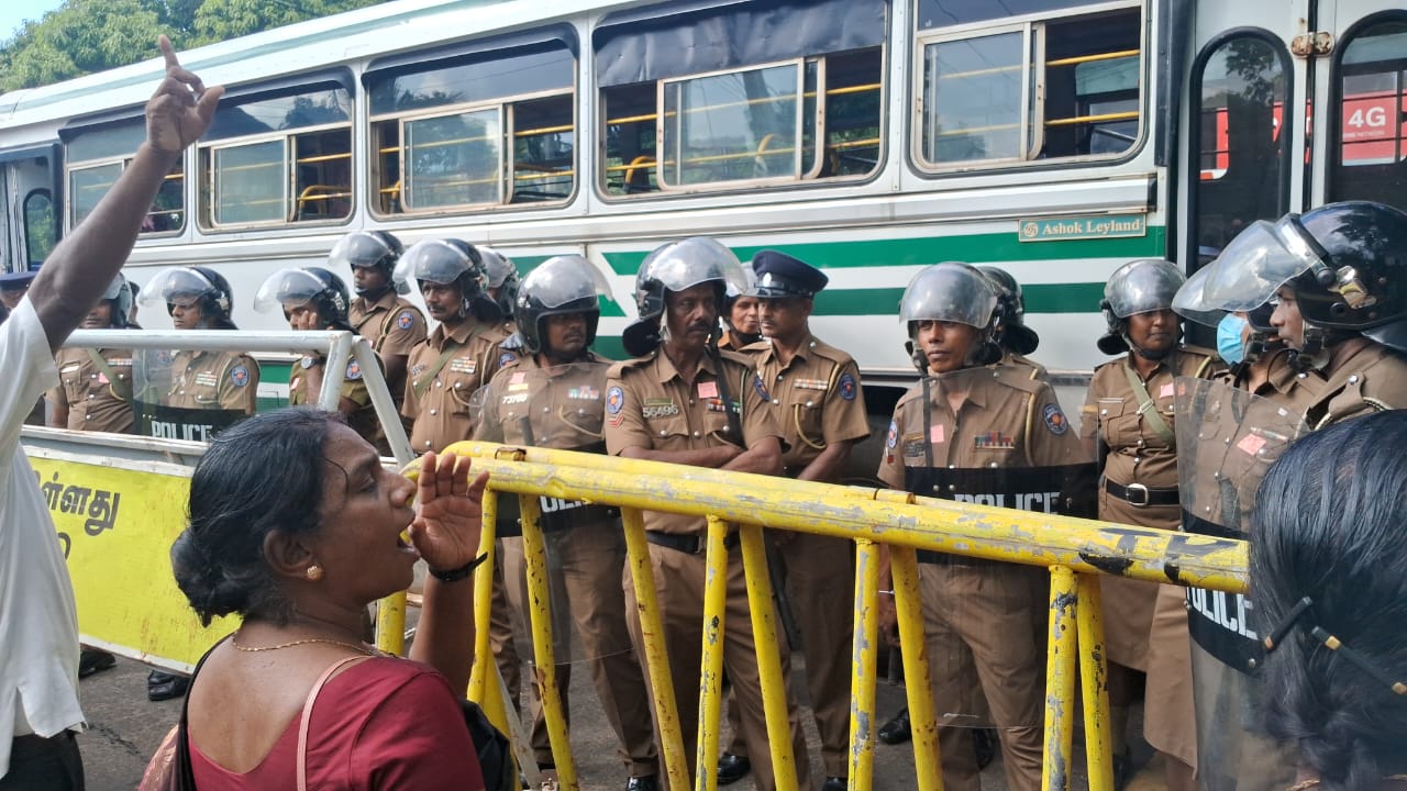 ஆர்பாட்டத்தில் ஈடுபட்ட தமிழ்த் தேசிய மக்கள் முன்னணியின் செயற்ப்பாட்டளர்களான,அருள்மதி , பொன் மாஸ்ரர் , சத்தியசீலன் உள்ளிட்ட பலரை அச்சுறுத்தி சிங்கள பொலிஸார் அதிரடியாக கைது செய்யப்பட்டனர்.