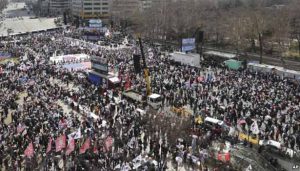 அதிபர் பார்க் கியூன் ஹே உடனடியாக பதவி விலக வேண்டும் என்ற கோரிக்கையுடன் சுமார் 13 லட்சம் மக்கள் பங்கேற்ற பேரணியும் ஆர்ப்பாட்டமும் சியோல் நகரில் கடந்த ஆண்டில் நடைபெற்றது. இதையடுத்து, பாராளுமன்றத்தில் பார்க் கியூன் ஹே-வுக்கு எதிராக நம்பிக்கை இல்லா தீர்மானம் கொண்டு வரப்பட்டு அவர் பதவி நீக்கம் செய்யப்பட்டார்.