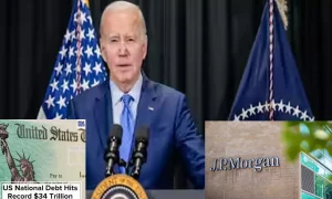 நியூயார்க் நகரை மையமாக கொண்டு இயங்கும் பன்னாட்டு நிதி நிறுவனம், ஜேபி மோர்கன் (JP Morgan).மிகப்பெரும் நிதி முதலீட்டு ஆலோசனை மற்றும் நிதி சேவைகள் ஆகியவற்றில் நீண்ட அனுபவம் மிக்க இந்நிறுவனம், உலக நாடுகளின் நிதி நிலவரம் குறித்து அவ்வப்போது கருத்துக்கள் வெளியிடுவது வழக்கம்.அமெரிக்க கடன் சுமை தற்போது $34 ட்ரில்லியன் ($34 trillion) தொகையை தாண்டி விட்டது.