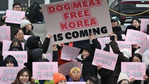 தென்கொரியாவில் நாய்களை உணவுக்காக கொல்லும் நடைமுறை உள்ளது. நாய் இறைச்சிக்கு தடை விதிக்க வேண்டும் என்று விலங்கு நல ஆர்வலர்கள் கோரிக்கை வைத்து வந்தனர்.
