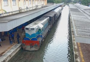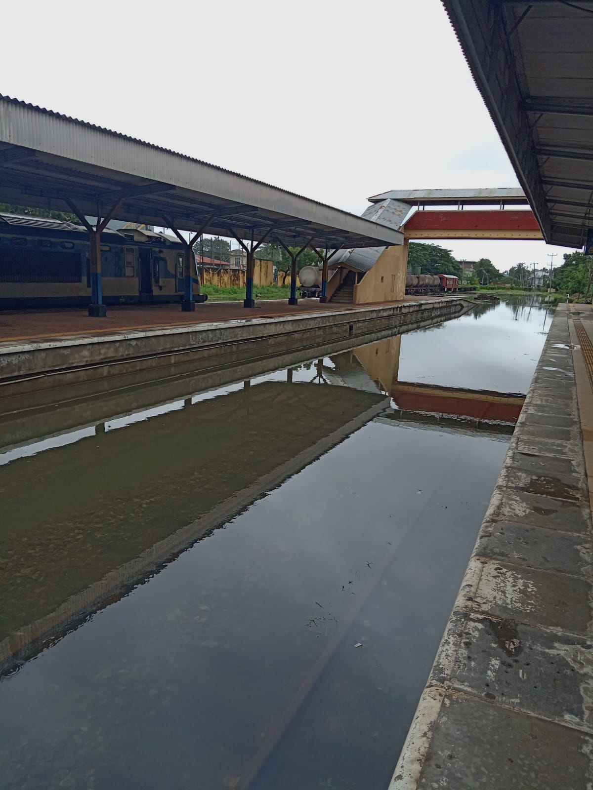 பலத்த மழை காரணமாக ரயில் பாதையில் வெள்ளப்பெருக்கு ஏற்பட்டுள்ளதால் அந்தப் பாதை ஊடான ரயில்களை இயக்கத் தடை விதிக்கப்பட்டுள்ளது.