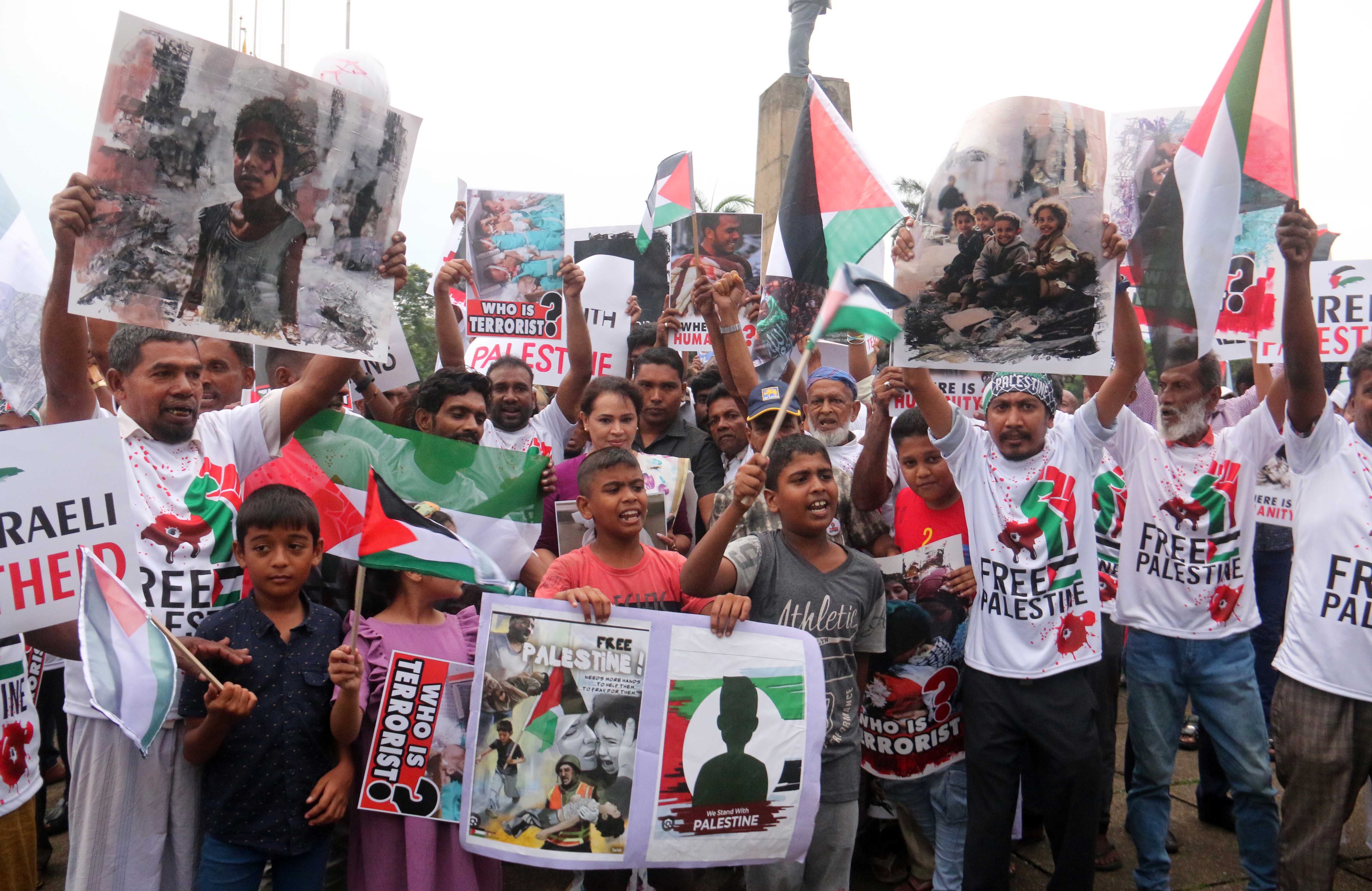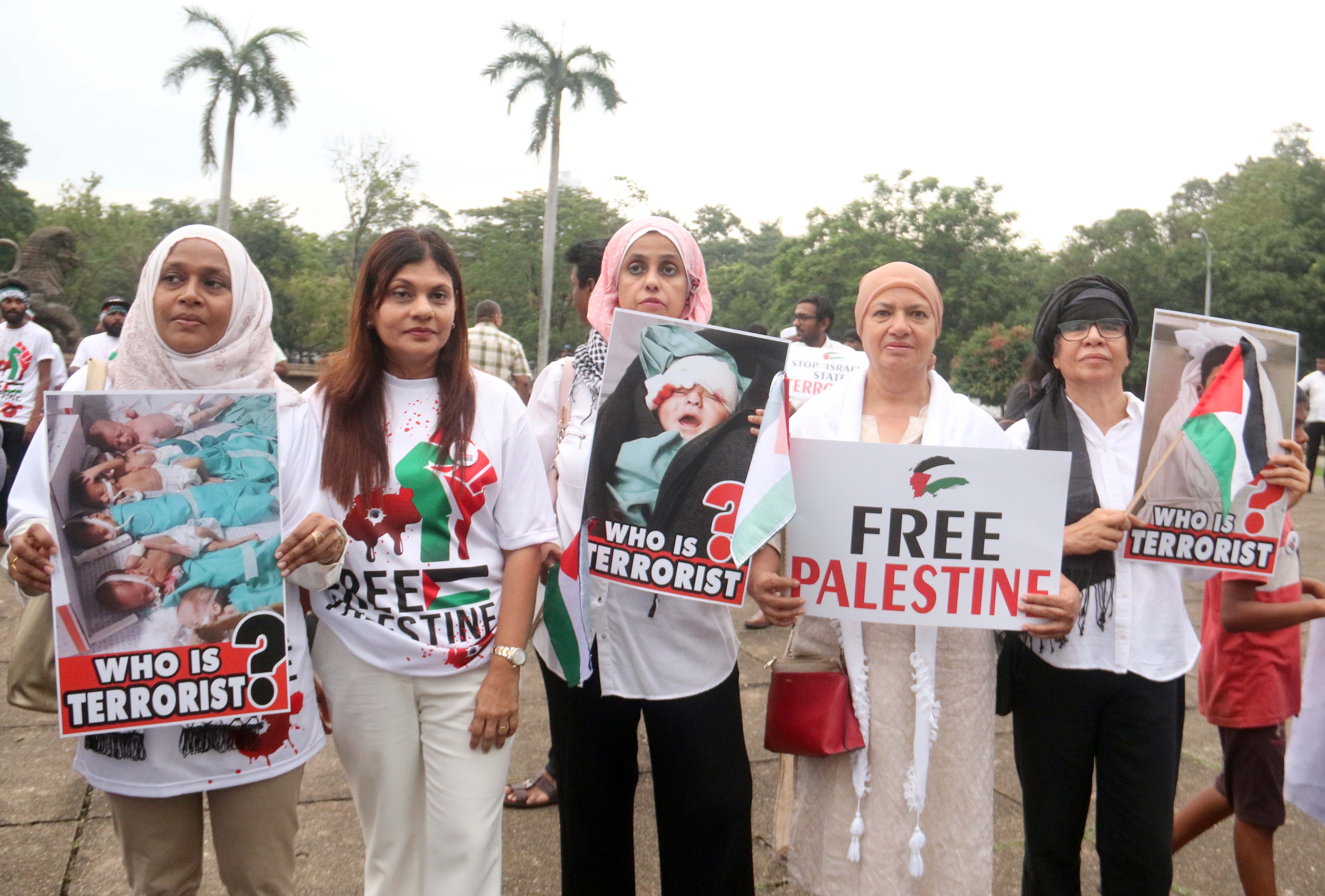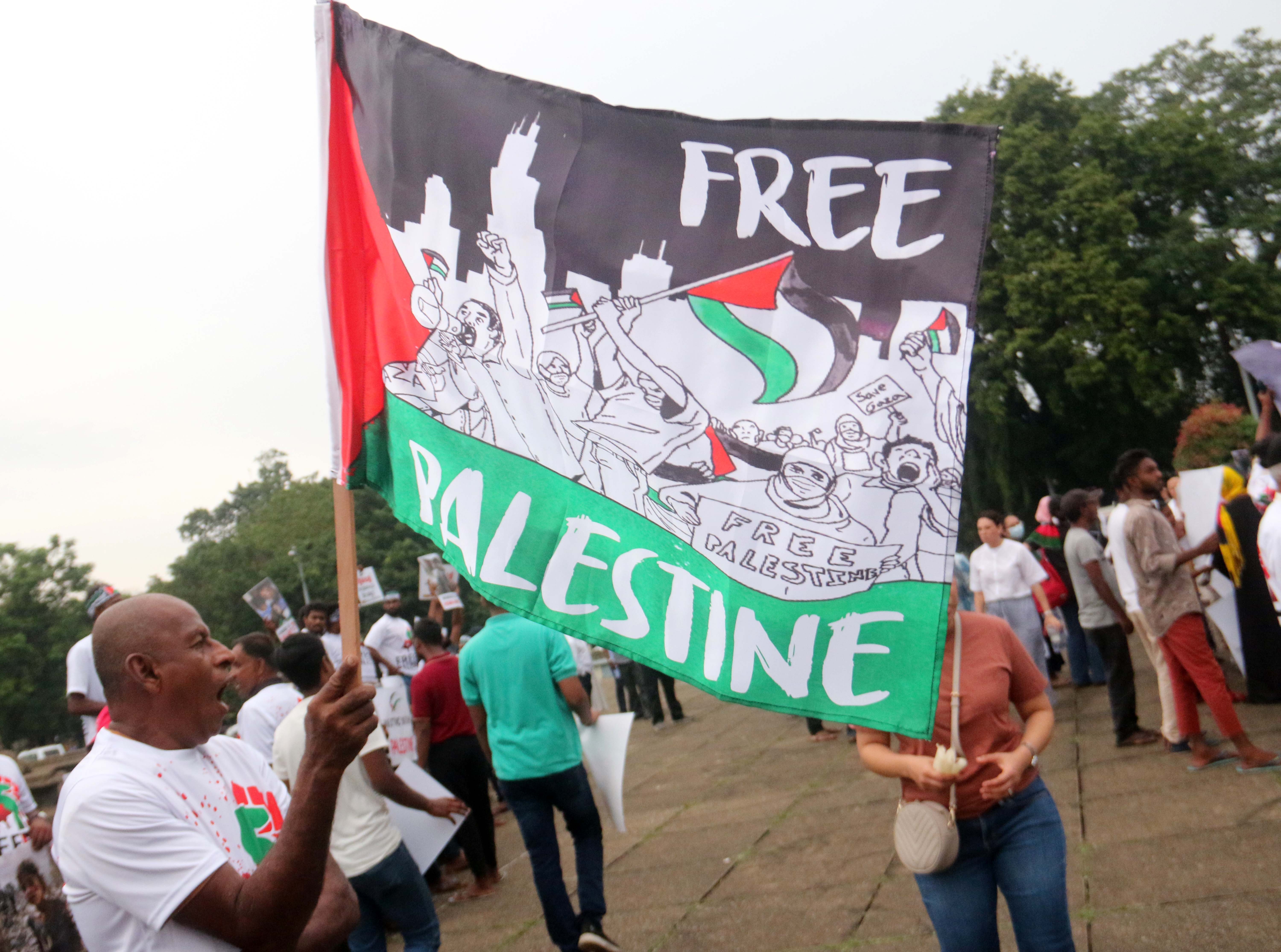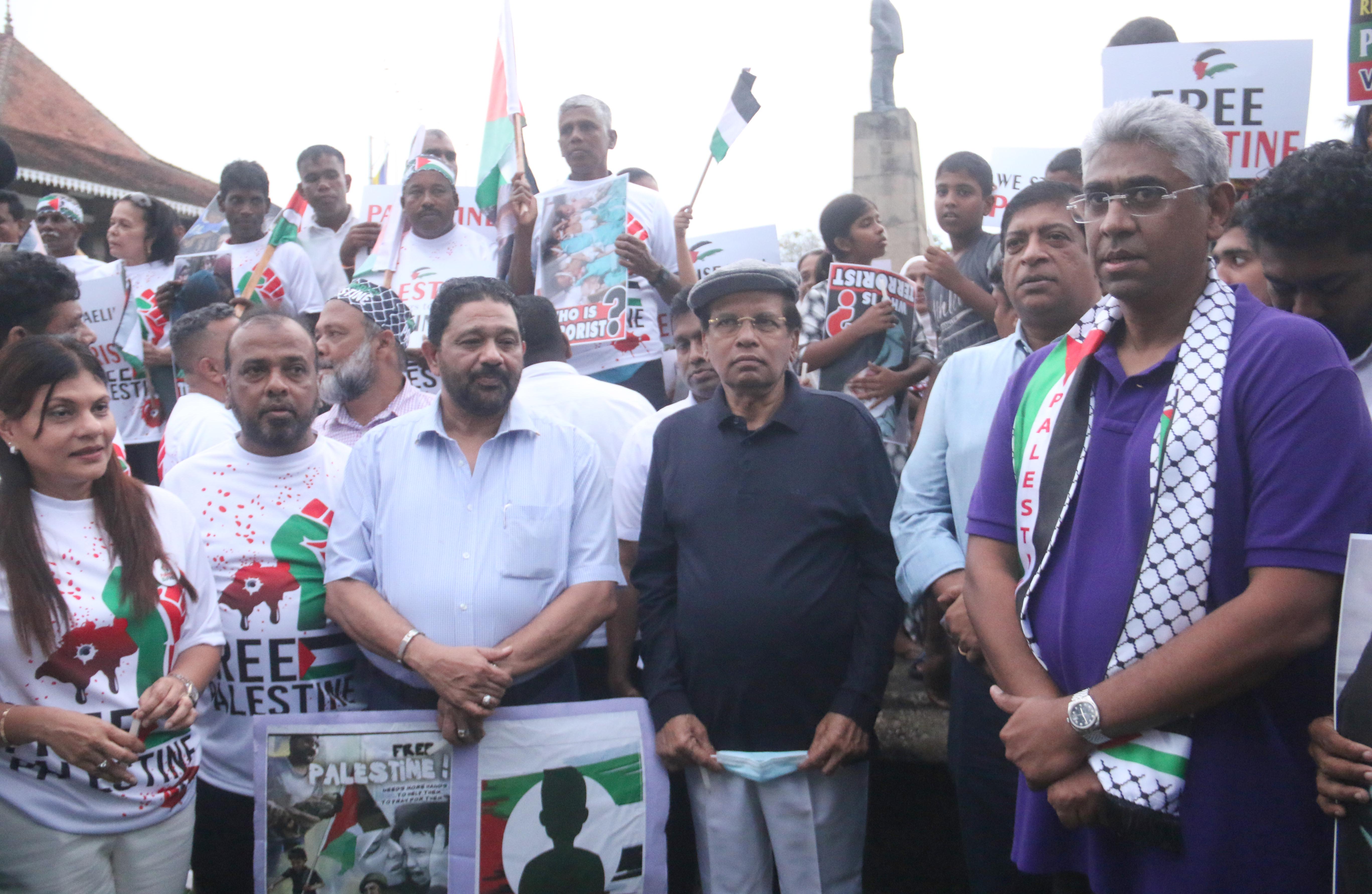 பலஸ்தீன மக்களுக்கு எதிரான தாக்குதல்களை நிறுத்தக் கோரி அரசியல் கட்சிகள் மற்றும் சிவில் அமைப்புகளின் ஏற்பாட்டில் புதன்கிழமை (10) கொழும்பு சுதந்திர சதுக்கத்தில் இடம்பெற்ற ஆர்ப்பாட்டத்தில் முன்னாள் ஜனாதிபதி மைத்திரிபால சிறிசேன, முன்னாள் பாராளுமன்ற உறுப்பினர்களான ரவி கருணாநயக்க, பைசர் முஸ்தபா மற்றும் முன்னாள் ஆளுநர் அசாத் சாலி உட்பட பலரும் கலந்து கொண்டார்கள்.