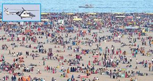 இதனால் நேரம் செல்ல செல்ல பொதுமக்களின் கூட்டம் அதிகரித்தது. மாலை வேளையில் பல்லாயிரக்கணக்கான மக்கள் குவிந்தனர். குடும்பத்தினருடன் கடற்கரை மணலில் அமர்ந்து பொழுதை போக்கி மகிழ்ந்தனர். குழந்தைகளும் கடற்கரை மணலில் உற்சாகமாக ஓடி ஆடி விளையாடி குதூகலித்தனர்.