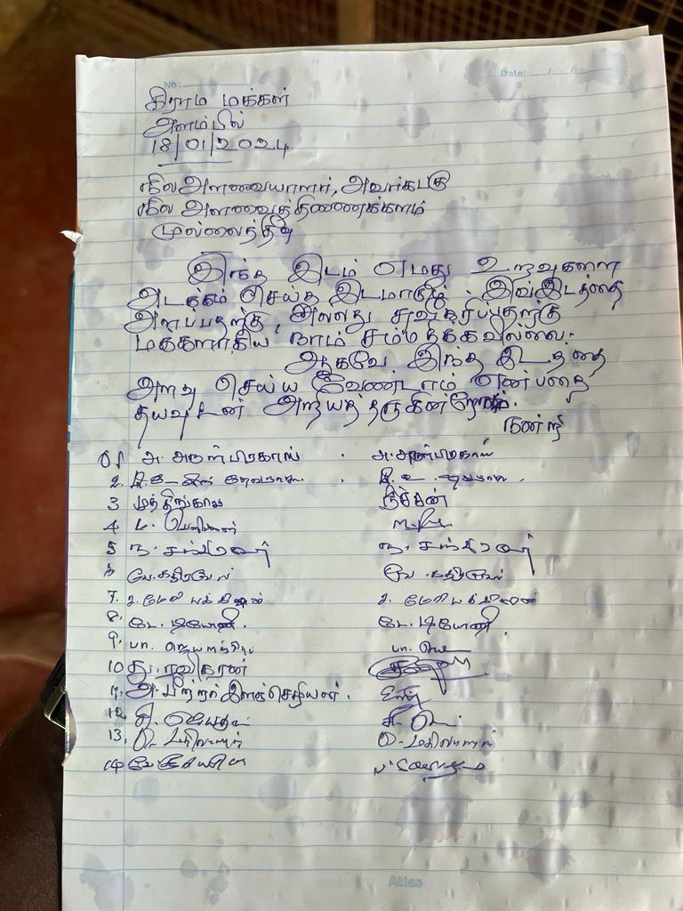 அத்தோடு குறித்த காணியினை அளவீடு செய்து, இராணுவத்திற்காக சுவீகரிக்கும் நடவடிக்கையினை அனுமதிக்கமுடியாதென அப்பகுதிமக்களாலும், மக்கள் பிரதிநிதிகளாலும், அங்கு வருகைதந்த நில அளவைத்திணைக்கள அதிகாரியிடம் மகஜர் ஒன்றும் கையளிக்கப்பட்டது.