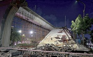 வேளச்சேரி – பரங்கிமலை பறக்கும் ரயில் பாதை திட்டத்தில், 500 மீட்டர் தொலைவு பாதையில் கட்டுமானப் பணிகள் நடைபெற்று வரும் நிலையில், தில்லை கங்கா நகர் அருகே மேம்பாலத்தின் ஒரு பகுதி உடைந்து விழுந்து விபத்துக்கு உள்ளானது.