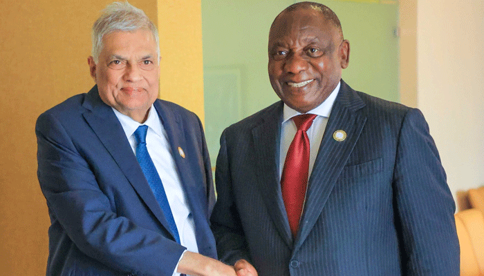 இதன்போது ஜனாதிபதி ரணில் விக்கிரமசிங்கவை தென்னாபிரிக்க ஜனாதிபதி மிகவும் அன்புடன் வரவேற்றதுடன் இரு நாட்டுத் தலைவர்களும் இருதரப்பு கலந்துரையாடலில் ஈடுபட்டனர்.