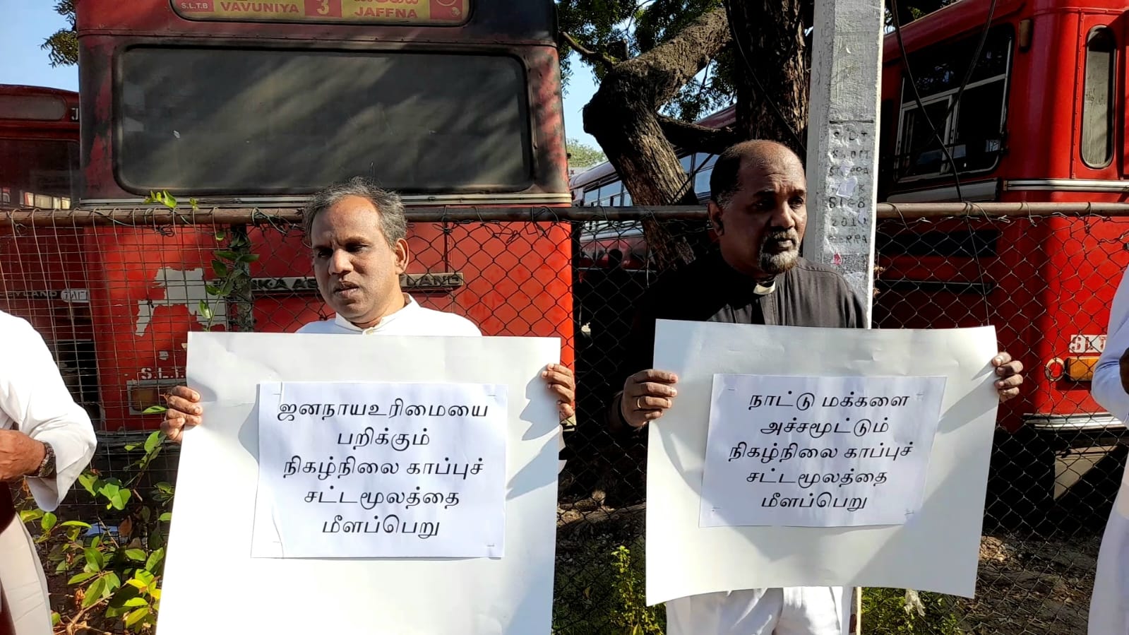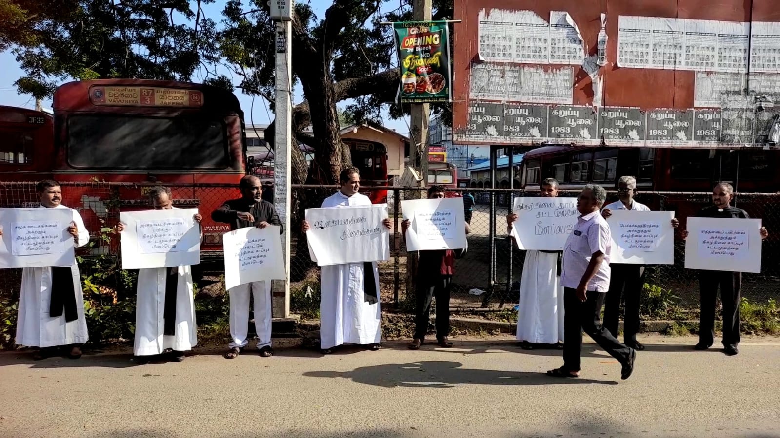 யாழ்ப்பாணம் பஸ் நிலையத்திற்கு முன்பாக யாழ். கிறிஸ்தவ ஒன்றியத்தின் ஏற்பாட்டில் இந்த போராட்டம் இடம்பெற்றது.
